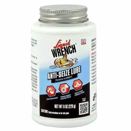 LIQUID WRENCH® Anti-Seize Lube is a superior high quality anti-seize lubricating compound of very fine metallic particles in a special high heat petroleum carrier. This product shields surfaces by providing a lamination of solid lubricants, and operates at temperatures over 2000°F.